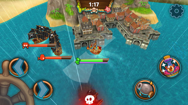 In League of Pirates you can fight ship battles against four other players in different arenas. Competing in these battles you earn treasure chests, that contain cards, which allow you to upgrade and unlock more ships and a variety of power-ups.
