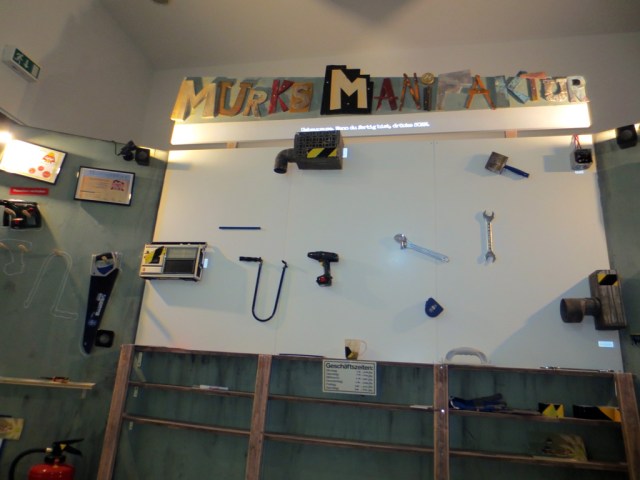 This game combines virtual characters and collectables with real objects. Players can go up to the wall and rearrange the tools to build a platforming level to their liking. Afterwards the wall is scanned by an infrared camera and up to four players can start to play. Each player controlls one of the characters and tries to collect as many coins as they can within the time limit.